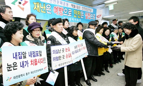 동구자원봉사협의회, 동구특전재난구조협회 회원 등과 함께 실시한 이날 행사에서는 시민 안전의식 고취를 위해 주변 상가와 시민들에게 홍보 전단지를 배부하며 겨울철 취약시설 안전점검과 안전사고 예방을 위한 홍보활동을 펼쳤다.