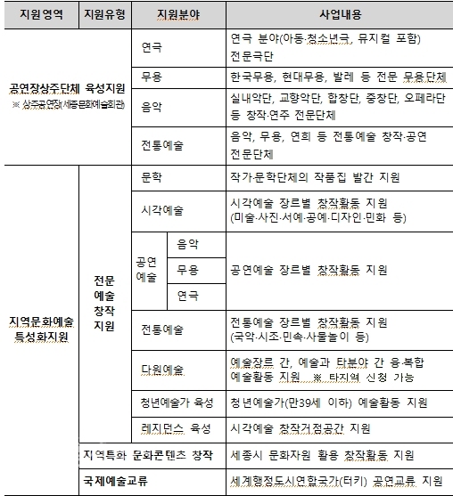 한편 지역특화 문화콘텐츠 창작과 국제예술교류 분야는 3월 중 별도 공모를 통해 진행될 예정이다.
