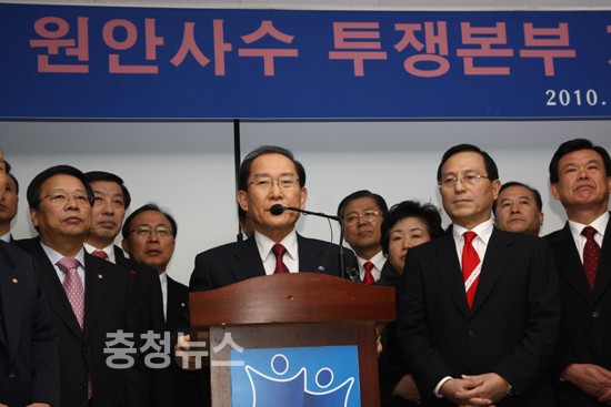 이회창 총재는 격려사에서 정부가 수정안 내용을 내일 발표한다. 그런데 미리 언론을 통해 나온 내용을 보면 행정기관 일부 이전을 백지화하고 과학 기술도시, 또 기업 산업도시로 만든다면서 세종시 원안 수정 반대 투쟁본부를 도당에 설치하고, 그 투쟁에 나서고자 한다고 말했다.