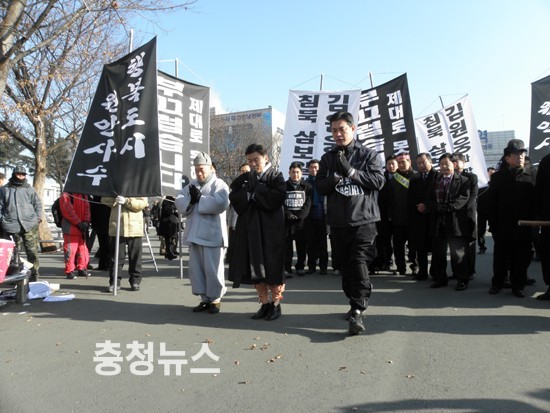 한편, '김원웅의 침묵 삼보일배’는 13일 시작했으며 대전역을 출발해 14일 중구으능정이, 중앙로를 행진했다.