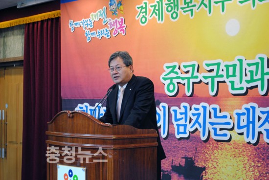 박성효 시장은 " 중구에서 자라고 중구청사에 근무한 경험이 있어 마치 집에 온 것처럼 푸근한 마음이 든다"고 인사를 대신했다.