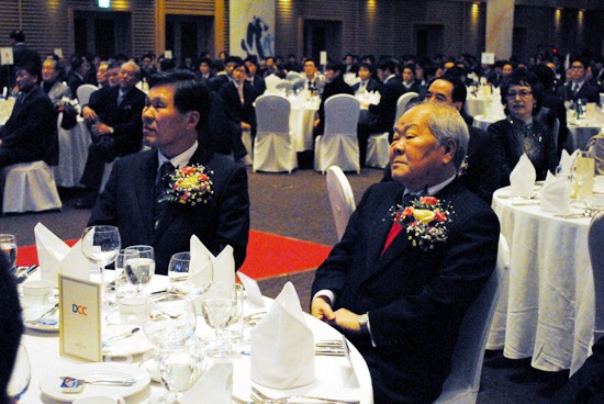 ▲ 이인구 명예회장 과 이시구 회장이 창사 40 주년 행사 진행을 지켜보고 있다