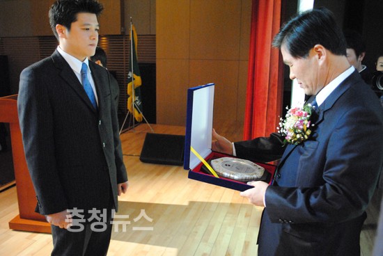 ▲ 이시구 회장, 창사 40 주년, 유공 사원 표창을 하고 있다