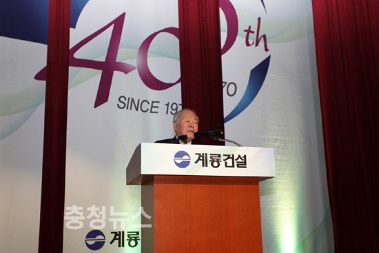 이인구 명예회장은 "계룡건설이 창사 40주년을 맞이했다"며 "인생의 40나이는 불혹의 시대"라고 했다. 자신의 인생철학과 소신이 분명해지는 나이가 되고, 어떠한 인생의 유혹이나 꼬임에 빠지지 않고 자신의 인생을 독자적으로 꿋꿋하게 밀고나가는 시대라는 것이 40세 불혹의 시대라고 한다. 창사 이래 숱한 역경을 헤매면서 불사조 같은 신화를 창조하면서 오늘에 이르렀다"고 소회했다.