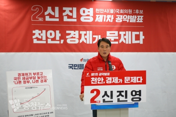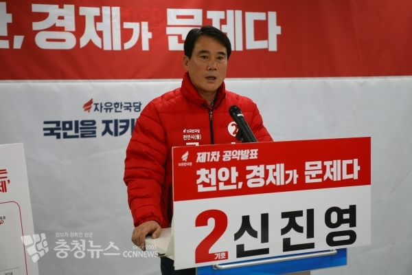 신 후보는 “문재인 정부의 경제정책을 전환시키고 시장의 자율성을 확보하는 한편 천안 관내 공적 개발을 늘려 대한민국과 천안의 경제를 살리겠다”고 밝혔다.
