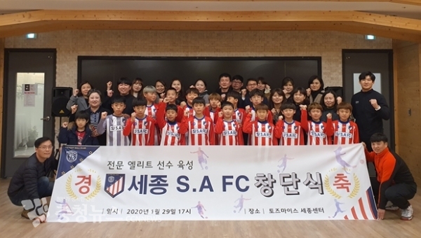 29일 나성동에스빌딩 4층에서 S.AFC U-12, U-15세 엘리트 축구클럽이 학생과 학부모 100여명이 참석한 가운데 창단됐다.