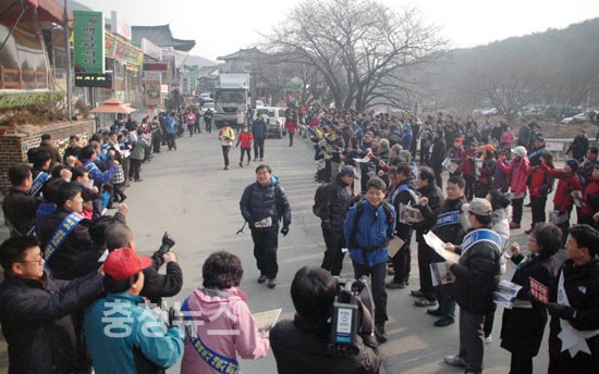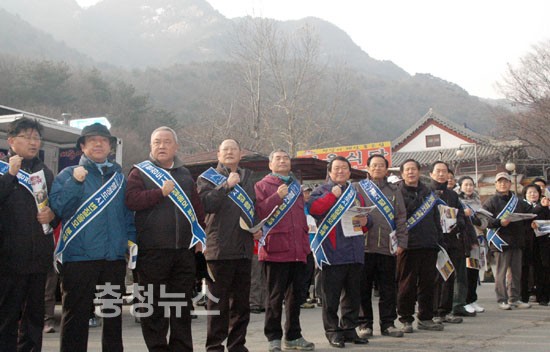 자유선진당(총재 이회창)은 31일 오전 10시 계룡산 동학사 입구에서 이재선 최고위원(대전광역시당위원장)을 비롯한 지역 국회의원, 당직자 등 당원 300여명이 모인 가운데 등산객을 대상으로 ‘세종시수정안 저지’ 홍보물을 배포했다.