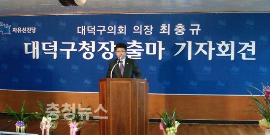자유선진당 최충규 대덕구의회 의장(자유선진당 대전시당 부위원장)이 오는 6.2 지방선거 대덕구청장 출마를 공식 선언했다.