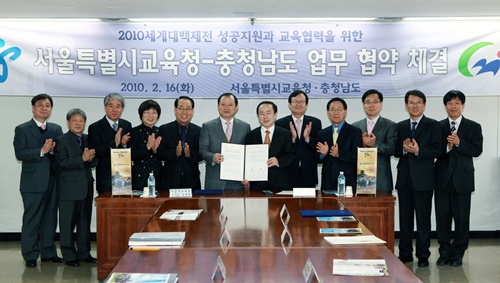 충남도는 16일 서울시교육청에서 이인화 충남지사 권한대행과 김경회 교육감 권한대행이 참석한 가운데 '2010세계대백제전' 성공 개최를 위한 업무협약을 체결했다고 밝혔다.