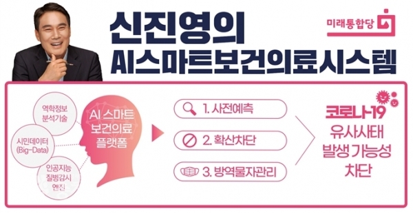 미래통합당 신진영 예비후보(천안시을)가 2일 “감염병 발생 예방과 효과적인 대처를 위한 AI스마트보건의료시스템을 천안시에 구축하겠다”고 밝혔다.