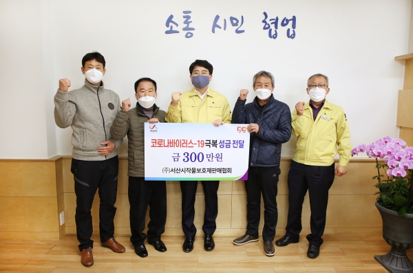 지난 6일 ㈜서산시작물보호제판매협회(회장 권영철)에서 서산시를 방문해 사회취약계층을 위한 코로나19 예방물품 구매에 사용해 달라며 300만 원의 성금을 전달했다. 저작권자 © 충청뉴스 무단전재 및 재배포 금지 최형순 기자 다른기사 보기 기사가 마음에 드셨나요? 충청뉴스 좋은 기사 후원하기 1,000원 3,000원 5,000원 10,000원 30,000원 50,000원 직접입력 비회원 약관동의하기 ※ 소중한 후원금은 더 좋은 기사를 만드는데 쓰겠습니다.