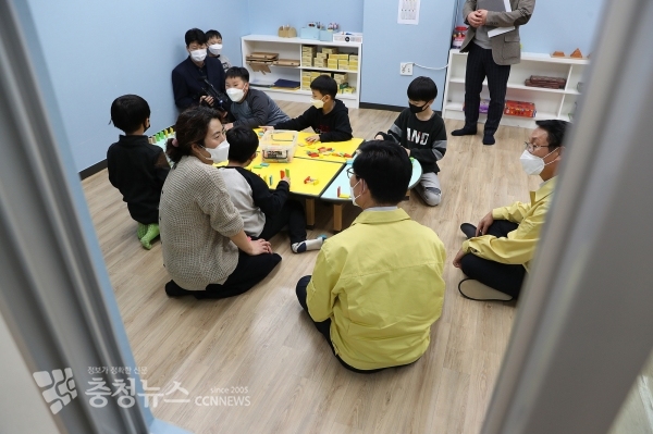 양 지사는 18일 내포신도시 LH스타힐스 아파트 아동통합지원센터 내에 설치된 ‘홍성군 아이들 세상’을 방문했다.