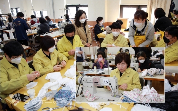 특히 이번에 제작되는 마스크는 감염 차단필터를 교체하면서 장기간 사용할 수 있는 면 마스크로, 필터 교환과 세탁이 가능한 3겹으로 위생적이고 숨쉬기에 불편함이 없다.