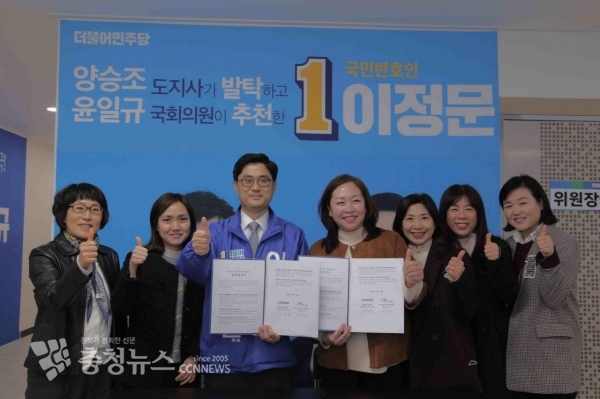 이정문 더불어민주당 천안(병) 국회의원 후보는 18일(수) 오후 5시, 이정문 선거사무소에서 (사)대한영양사협회 대전·충남·세종 영양사회(이하 영양사회)와 건강한 대한민국의 미래를 위한 정책협약을 체결했다.