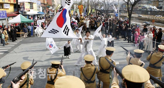 대전 동구(구청장 이장우)는 기미년 인동장터를 뒤덮었던 대한 독립 염원의 뜨거운 함성이 다시 한번 울려퍼진다며 16일 오후 인동 쌀시장 앞(전기안전공사 앞)에서 제11회 3.16 인동장터 독립만세운동 재현행사를 개최한다.