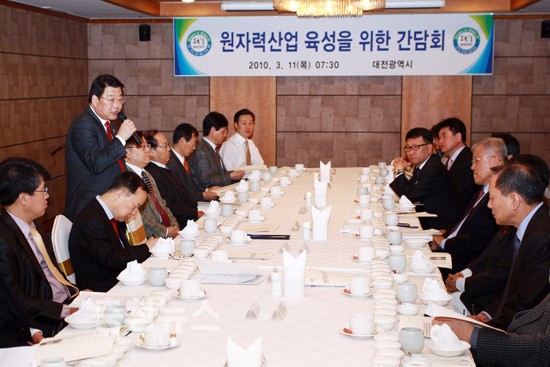 이날 간담회는, 10일 오전 이명박 대통령 대전시청을 방문하여 업무보고 자리에서 “원자력의학융합연구원 설립” 등 원자력산업 육성에 대해 정부에 건의함에 따라, 원자력 관련 전문가들이 모여 원자력 산업의 역할과 기능 등 기본적인 정책구상을 체계적이고 구체화하는 발전방안을 모색하는 자리였다.