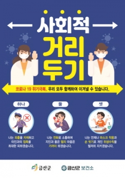 충남 금산군은 지난 22일부터 오는 4월 5일까지 추진되는 코로나19 관련 강도 높은 사회적 거리두기 캠페인을 모든 행정력을 동원한다.