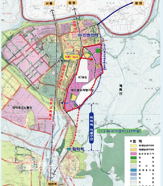 금번에 실시하는 용역은 신탄진 철도차량기지의 기존 신탄진역→철도차량기지의 인입선로를 회덕역→철도차량기지로 변경 위한 기본조사, 타당성 분석, 사업비 산출 및 합리적인 사업 추진방안 제시하는 것으로 한국철도공사가 약 2억원의 용역비를 부담하여 시행하게 된다.