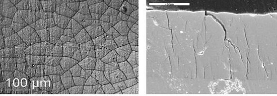 고유의 응력으로 인한 코팅층 내에 발생하는 균열(그림 1)의 문제로 내식성은 물론 코팅층의 내마모성문제로 소정의 극한적 고온 고압의 활용에