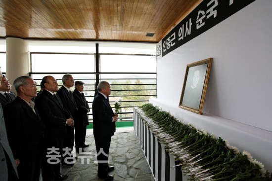 ▲ 이인구 계룡건설 명예회장, 안중근 의사 영전에 헌화했다 안중근 의사 순국 100주년을 맞아 이인구 계룡건설 명예회장(계룡장학재단 이사장)과 계룡건설 및 계룡장학재단 임원들이 25일(목) 오전 국립대전현충원 보훈미래관에 봉안되어 있는 안중근 의사 영전에 헌화했다 저작권자 © 충청뉴스 무단전재 및 재배포 금지 김거수 기자 다른기사 보기 기사가 마음에 드셨나요? 충청뉴스 좋은 기사 후원하기 1,000원 3,000원 5,000원 10,000원 30,000원 50,000원 직접입력 비회원 약관동의하기 ※ 소중한 후원금은 더 좋은 기사를 만드는데 쓰겠습니다.