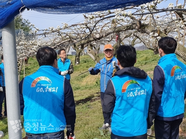 한국농어촌공사 천안지사(지사장 오기석)와 천안시기자협회(공동간사 정덕진, 주영욱) 합동으로 13일 성홥읍 소재 과수농가에서 일손돕기 사회공헌활동을 전개했다.