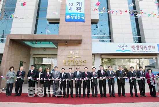 대전 유성구는 29일 진동규 유성구청장과 설장수 구의회의장 등 지역인사와 주민 등 300여명이 참석한 가운데 구민들의 배움의 길잡이가 될 문지동에 문을 연 평생학습센터 개관식 갖고 평생학습 시대의 개막을 예고했다.