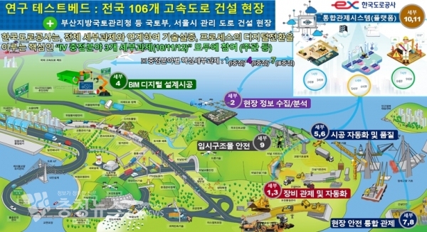한국도로공사가 12개의 개별 과제들을 실질적으로 검증하는 플랫폼과 테스트베드를 선점함으로써, 현재 도로공사에서 관리중인 106개 고속도로 건설현장(총 567km)에서 기술의 현장 적용과 검증이 가능해졌다.