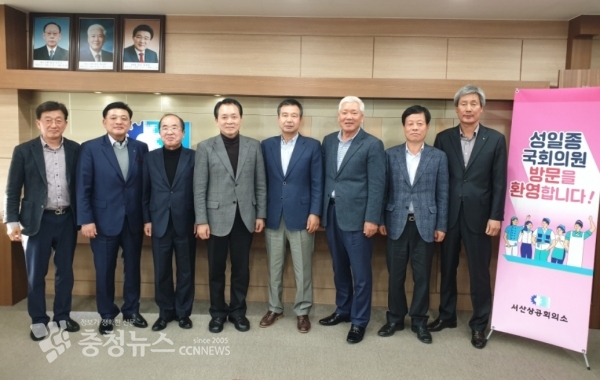 지난 21일 저녁 성 의원은 서산상공회의소를 방문해 조경상 현 회장, 최길학 명예회장, 정창현 직전회장, 김경호 대외협력위원장, 정관희 특별위원, 조규선 전 서산시장, 가재무 사무국장 등 역대회장단과의 간담회를 갖고 지역 내 중소기업과 소상공인들의 애로사항을 청취했다.