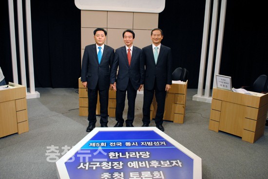 한나라당 대전 서구청장 예비후보들은 오늘 오후 CMB TV 프로그램에 출연 한치의 양보도 없는 열띤 공방을 벌였다.