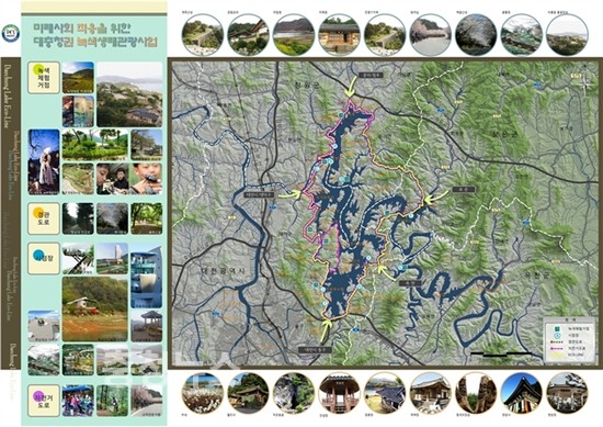 따라서 금년 하반기부터 마스터플랜을 수립하고 ▲대청호 중심의 통합브랜드(BI) 구축 ▲생태체험․농촌체험․역사유적지 문화탐방 등 대청호 주변의 다양한 연계 테마관광 코스개발 ▲자전거 대여시스템 ▲IT기반의 정보관광시스템 등을 연차적으로 구축하게 된다.