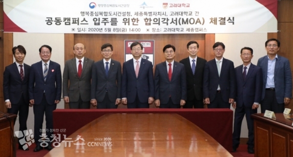 세종시와 행정중심복합도시건설청과 세종시, 고려대는 8일 공동캠퍼스 입주를 위한 합의각서(MOA)를 체결했다.