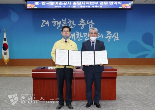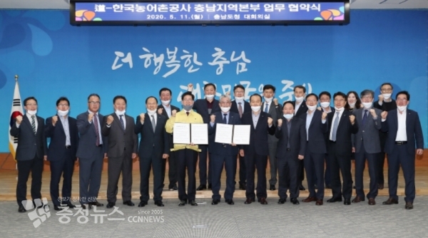 한국농어촌공사 충남본부는 11일 충청남도와 상호협력을 통한 기관의 상생발전을 도모하고 충남 농정발전을 위한 업무협약을 체결했다.