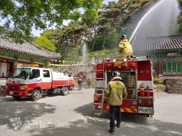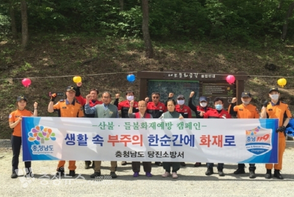 당진소방서(서장 김오식)는 14일 면천향교와 영랑사에서 봄철 산불 발생을 대비해 산불진압 훈련과 산불예방 캠페인을 실시했다.