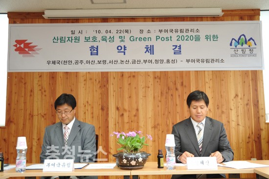 충청체신청은 22일 부여국유림관리소에서 충청지역 10개 우체국과 부여국유림관리소가 산림자원을 보호·육성하는데 협력하는 업무협약을 체결했다고 밝혔다.