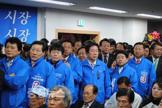 한편 이자리에 참석한 이회창 대표는 격려사를 통해 “권선택 후보를 따르는 많은 지지자들의 마음을 달래고 수습해서 선대본부장을 맡고 앞장서서 염홍철 후보를 당선시키겠다는 각오를 다졌다.” “우리 권선택 의원과 함께 이재선 최고위원이 선대 위원장을 맡아서 돌아오는 지방선거에서 염홍철 후보를 반드시 당선시키겠다는 서약을 했다.”며 염 후보에게 힘을 실어줬다.