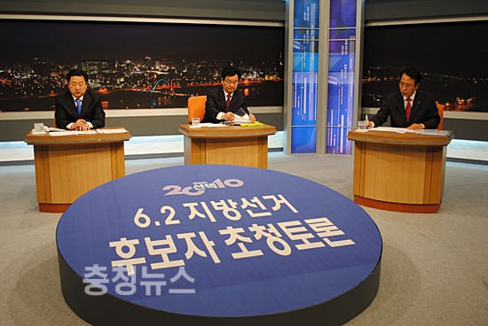 대전 MBC는 오는 6,2지방선거 기간 동안 16회의 생방송 TV토론회를 준비하고 있는 가운데 첫 순서로 한나라당 이장우 후보는 (명품 동구) 민주당  양승근 후보는 (복지 동구) 자유선진당 한현택는 ( 내일이 나은 동구 )를 공약을 내세우면 날선 공방을 펼쳤다.