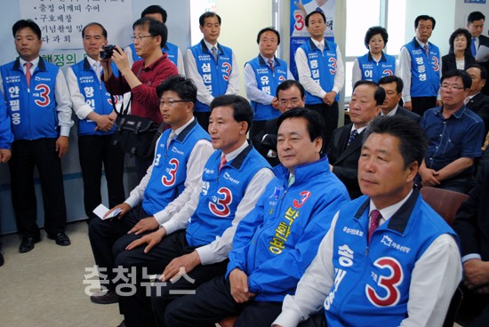 ▲ 자유선진당 한현택 대전동구청장 후보의 사무실 개소식에 온 구청장후보들