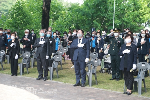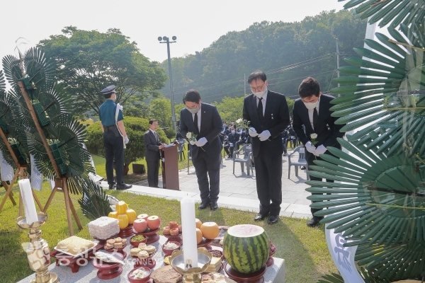올해 추념식은 코로나19 확산 방지를 위해 행사 규모를 축소하여 생활속 거리 유지를 지키며 추념식 행사장 사전방역 실시, 참석자 체온 체크, 마스크 착용 등을 엄수하며 진행됐다.