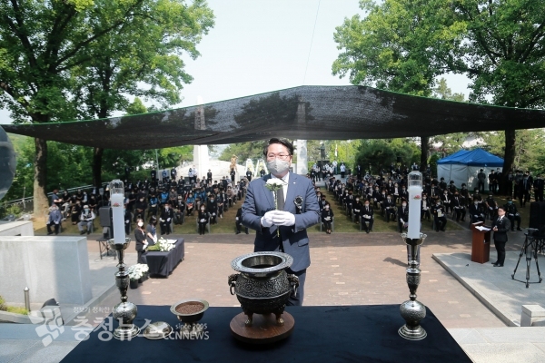 이날 추념식은 김영애 아산시의회 의장, 이명수·강훈식 국회의원, 김종관 경찰서장, 조기성 아산교육지원청 교육장 및 도․시의원 등 100여명도 참석했다.