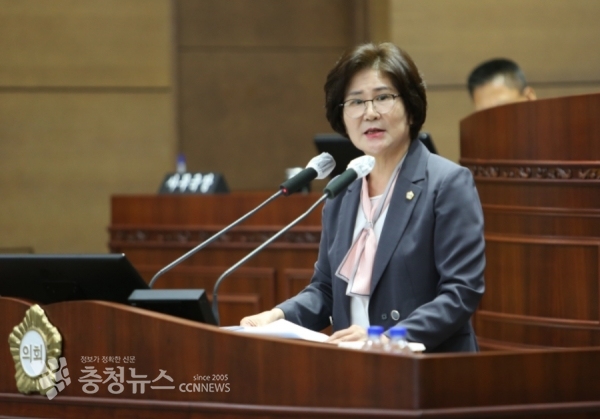▲ 이교희 의원은 하수종말처리장 시설 현대화 사업과 관련하여 시설현대화가 이루어지고 난 후에 풋살장이나 게이트볼, 피크닉장 등 시민을 위한 여가· 휴식 공간을 만드는 것을 제안했다. 또한, 하수종말처리장 현대화 사업을 민간투자사업으로 추진하는 것에 대해 천안시가 전 과정을 주도 할 수 있는 방법을 모색할 것을 요청했다.
