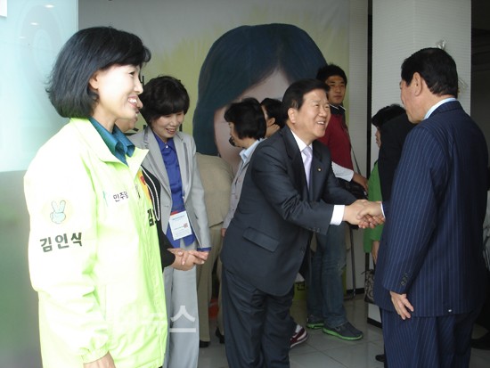 민주당 김인식 시의원 후보 사무소 개소식이 13일 오후 박병석 국회의원과 박범계 민주당 대전시당위원장, 선병렬 전 국회의원, 지역주민 등 500여명이 참석한 가운데 가수원사거리 사무소 현장에서 성황리에 열렸다.
