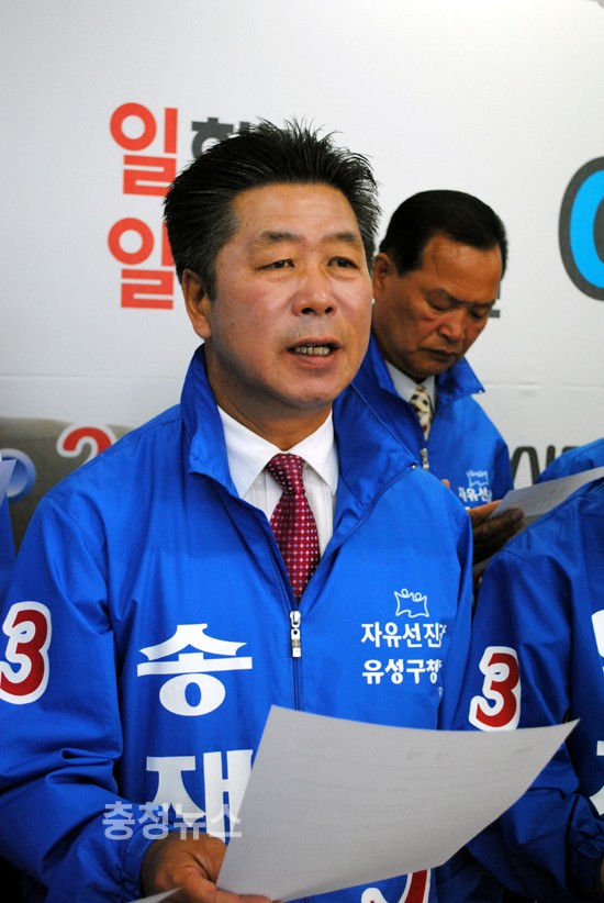 자유선진당 유성구 당원협의회(위원장 이상민)는 13일 오전 후보자 등록을 마친 송재용 유성구청장 후보를 비롯한 선진당 유성지역 후보자들은 이번 6-2지방선거를 ‘MB정부 심판의 장’으로 규정하고, 반드시 압승하여 ‘실추된 충청의 자존심’을 되찾겠다고 포부를 밝혔다.