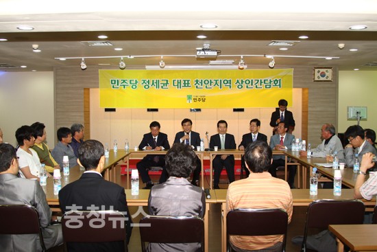 정세균 민주당 대표는 안희정 최고위원, 양승조 충남도당 위원장과 함께 14일 오후 천안 지하상가를 방문 지하상가 상인들과 간담회를 갖고 재래시장 및 영세상인들의 현장목소리를 청취하고 해결책을 모색했다.