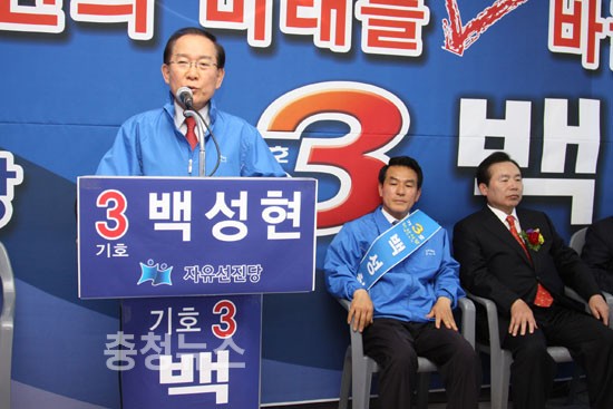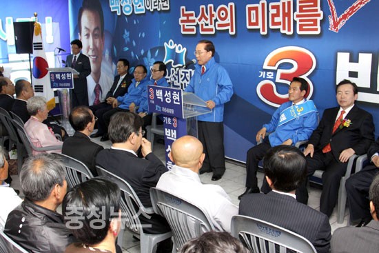 백성현 후보는 인사말에서 이회창 대표와 이인제 의원은 충청도의 큰 인물이며 큰 인물 밑에서 많은 것을 배우고 경험한 자신이 당선되어 시장과 국회의원이 협력하는 새로운 틀의 논산시를 만들 것을 약속하며 지지를 호소했다.