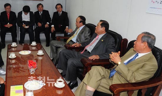 홍선기 前 대전시장은 16일 오전 한만우 前 대전상의 회장((주)한국신약 회장), 이윤원 前 대전일보사장, 김인회 前 대전상의 부회장 등과 함께 한나라당 박성효 시장후보 선거사무소를 방문, 홍성표 선대위원장과 담소를 나누었다.