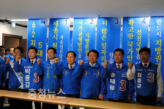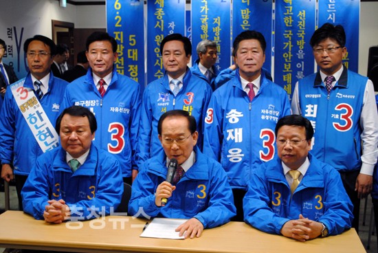 한편,염홍철 시장 후보는 "선진당이 이번 지방선거에서 압승해야만 하는 3가지 당위성과 필연성이 있다."며  ▲압승해야 세종시 원안을 지킬 수 있다. ▲  이 정부의 '대전홀대론'을 심판할 수 있다. ▲ 압승해야 무능한 한나라당 중심의 대전의 지방정부를 교체할 수 있다고 주장했다.