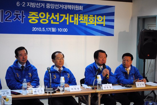 선거대책위원회는 대전시 서구 둔산동 염홍철 대전시장 후보 선거사무소에서 중앙당 당직자와 지방선거 후보 등 10여명이 참석한 가운데 열렸으며 "이 정권은 수시로 약속을 뒤집고 말을 바꾸는 등 국민의 신뢰를 잃었다."고 말했다.