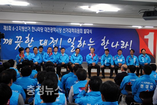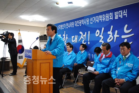 한편, 이날 발대식은 이훈규(충남도당위원장), 이완구(前 충남도지사)를 공동 선대위원장으로 고문단, 부위원장단, 본부장 등 500여명으로 구성되었다.