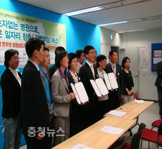 협약식 후 민주당 충남도당은 충남지역 병원노조, 자활센터, 여성단체 관계자들과 간담회를 통해 충남도 보건·복지와 관련한 정책요구를 수렴했다.