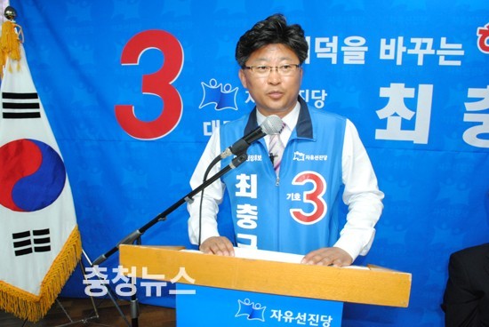 최충규 자유선진당 대덕구청장 후보는 19일 자유선진당 대전시당에서 기자회견을 열고 대전시가 동춘당 공원의 옛모습을 찾는다며 44억원을 들여 시행한 ‘동춘당공원 옛모습찾기 사업’이 졸속으로 시행됐다며 개선을 요구했다.